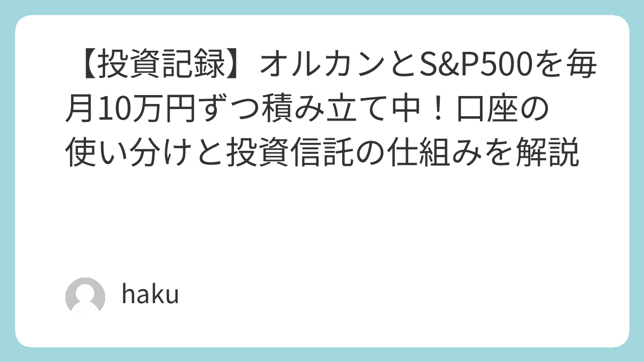 オルカンとS&P500を半々で積み立て、時々スポット購入を加えながら、少しずつ資産を育てていく。